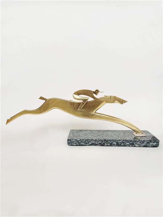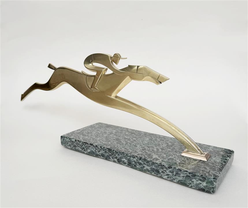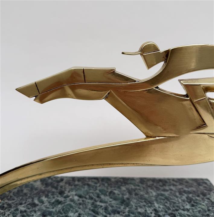 An Art Deco brass sculpture of a racehorse and jockey
