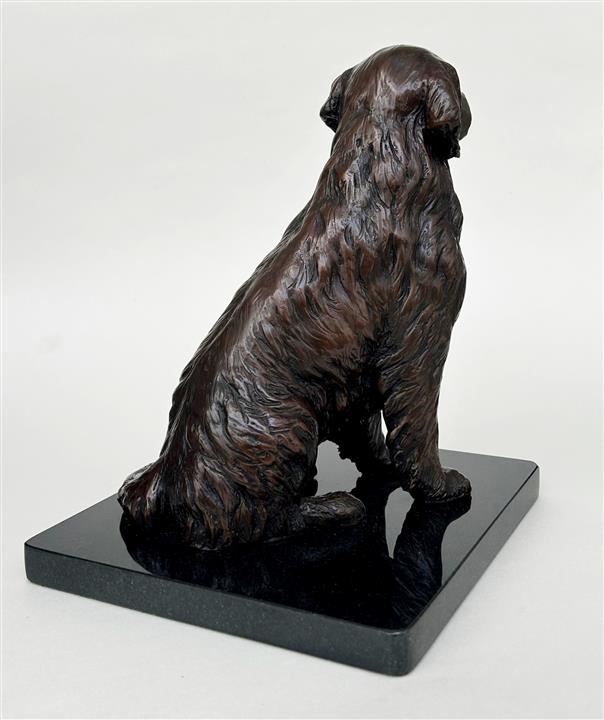 Golden Retriever on a black quartz plinth