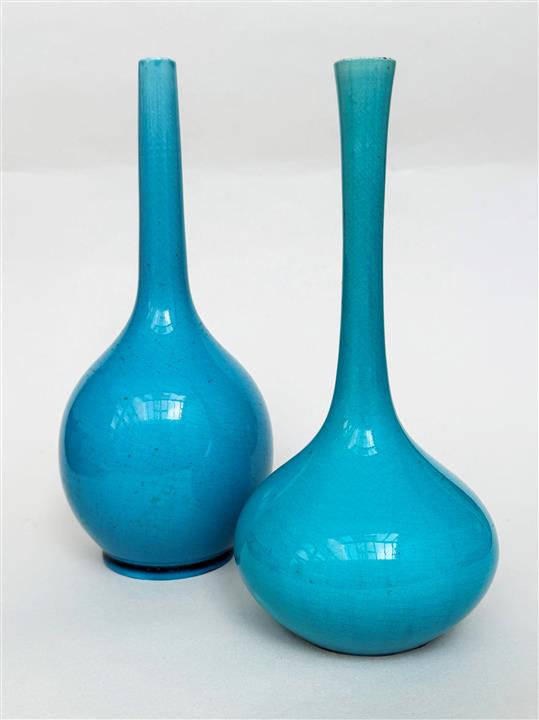 Two turquoise glaze vases by Burmantofts Pottery, Leeds
