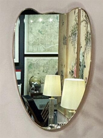 A pair of brass framed shield mirrors